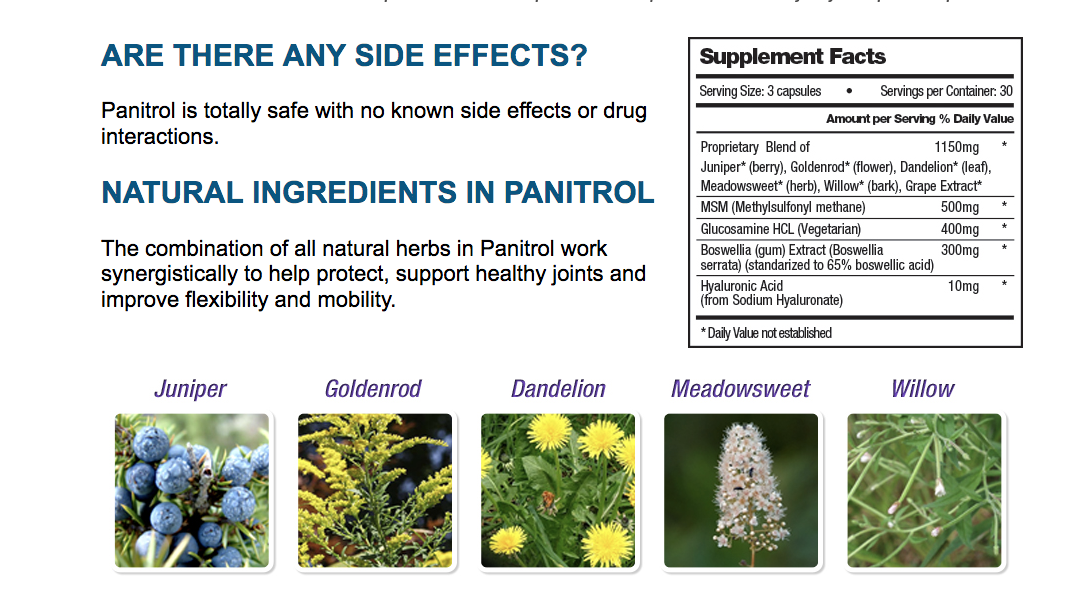 Panitrol XL pain relief ingredient matrix includes a blend of herbal extracts and active botanicals which have been clinically proven to support healthy joints while improving flexibility & mobility. An added advantage of PanitrolXL is that it also keeps the muscles, joints, and cartilages lubricated to prevent the very onset of pain.